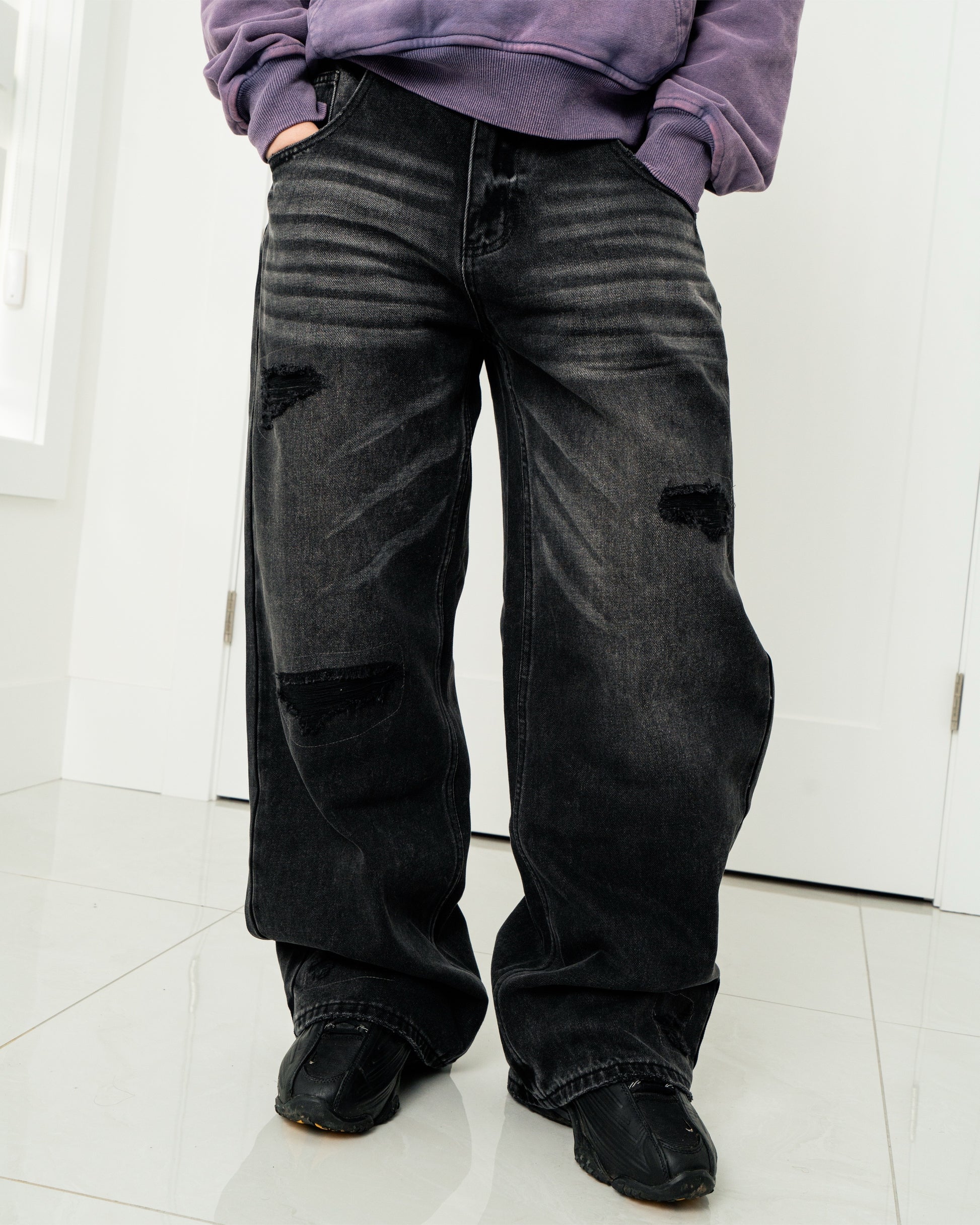 DISTRESSED DENIM - WASHED BLACK